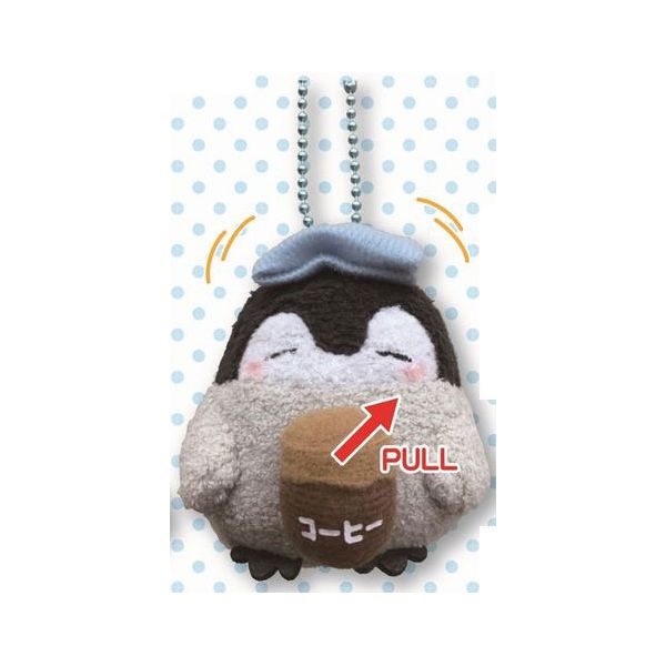 帽子や邪エナガさん、コーヒーを引っ張るとコウペンちゃん”ぶるぶる“動くギミックです