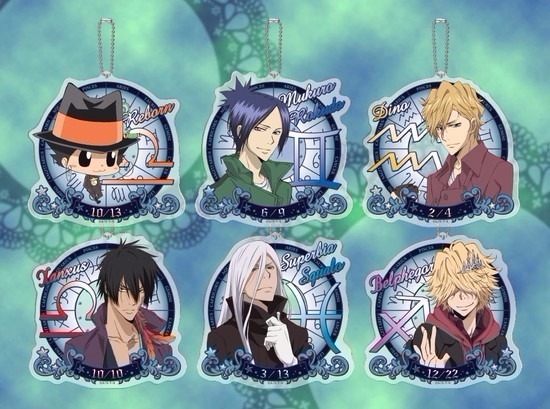 各キャラクターの誕生日と星座がデザインされたオシャレなアクリルキーホルダーです